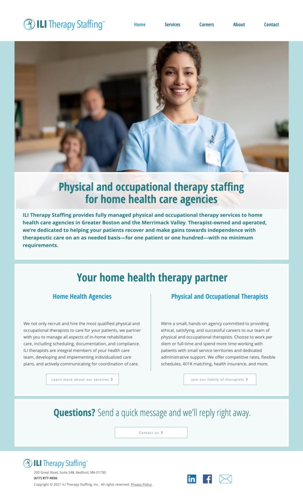 ILI Therapy Staffing provided fully managed physical and occupational therapy services to home health care agencies in Greater Boston and the Merrimack Valley.